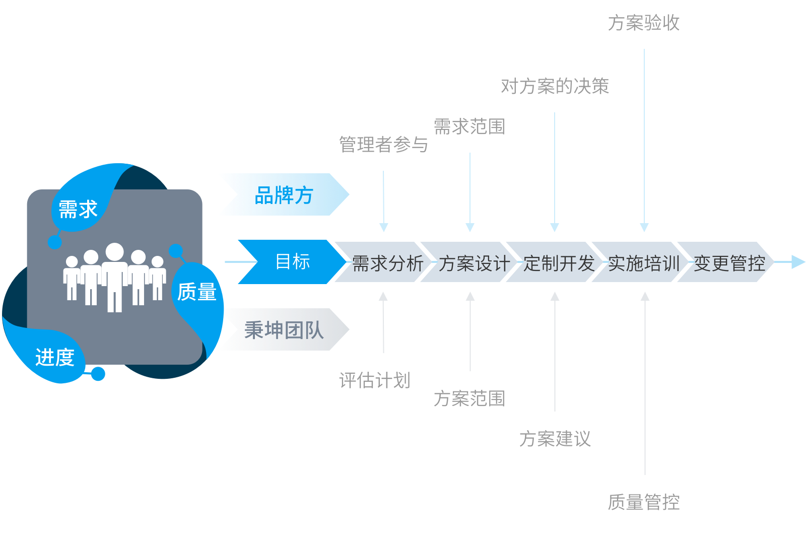 擁有不同行業和品牌服務經驗的項目咨詢顧問,將針對品牌的業務問題,快速梳理并定制行之有效的解決方案,并在項目進展的各個階段提供咨詢建議,以保證項目預期效果的實現。